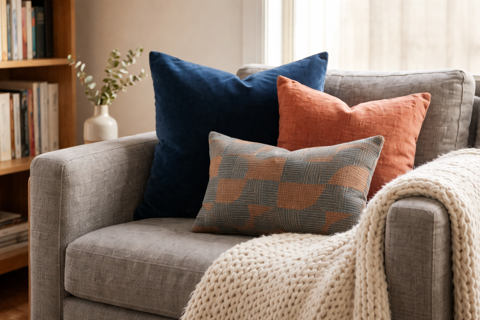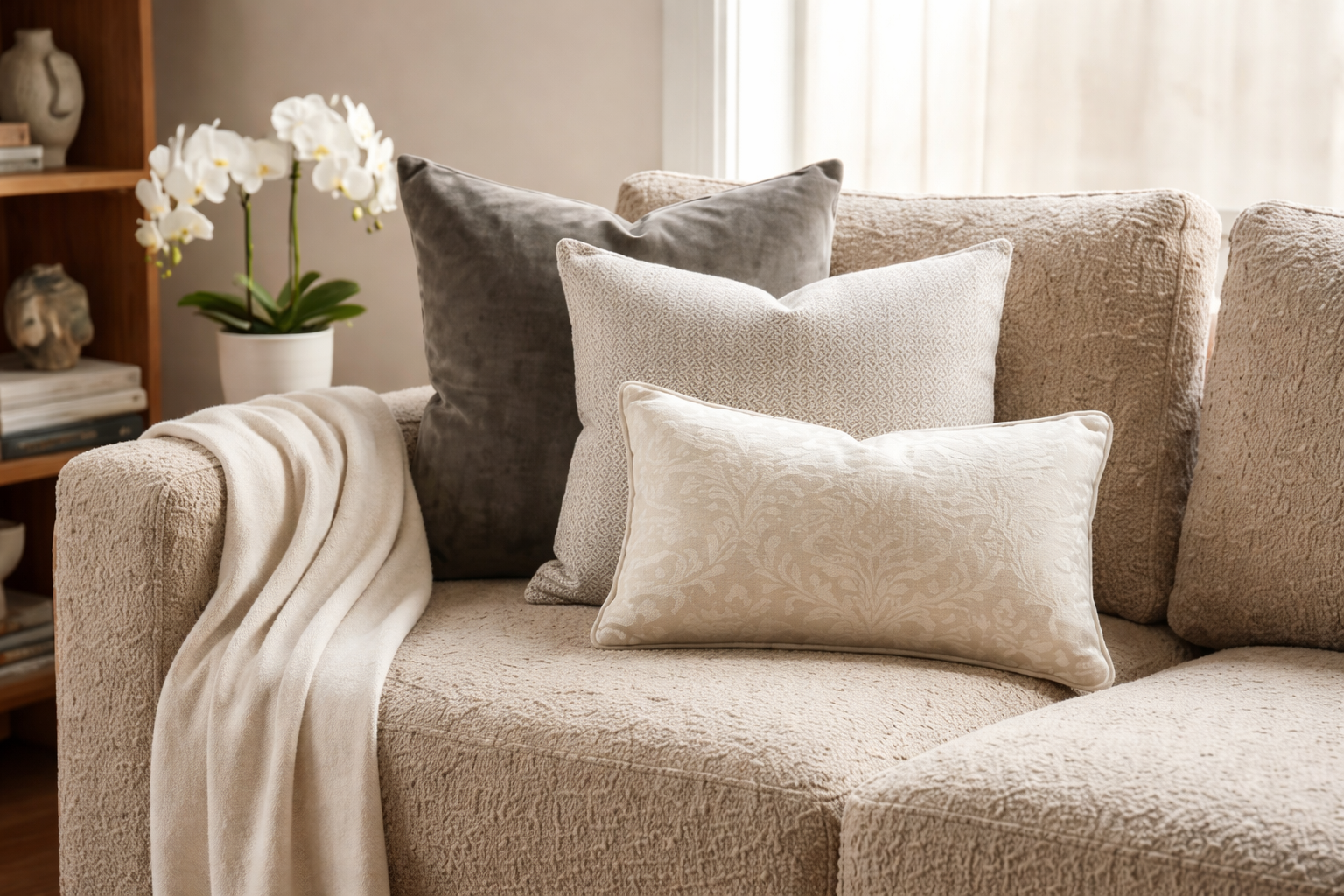 Almofadas são detalhes que transformam qualquer ambiente, adicionando cor, textura e personalidade. Criamos combinações exclusivas com tecidos selecionados e acabamentos artesanais, adaptados ao estilo de cada cliente.