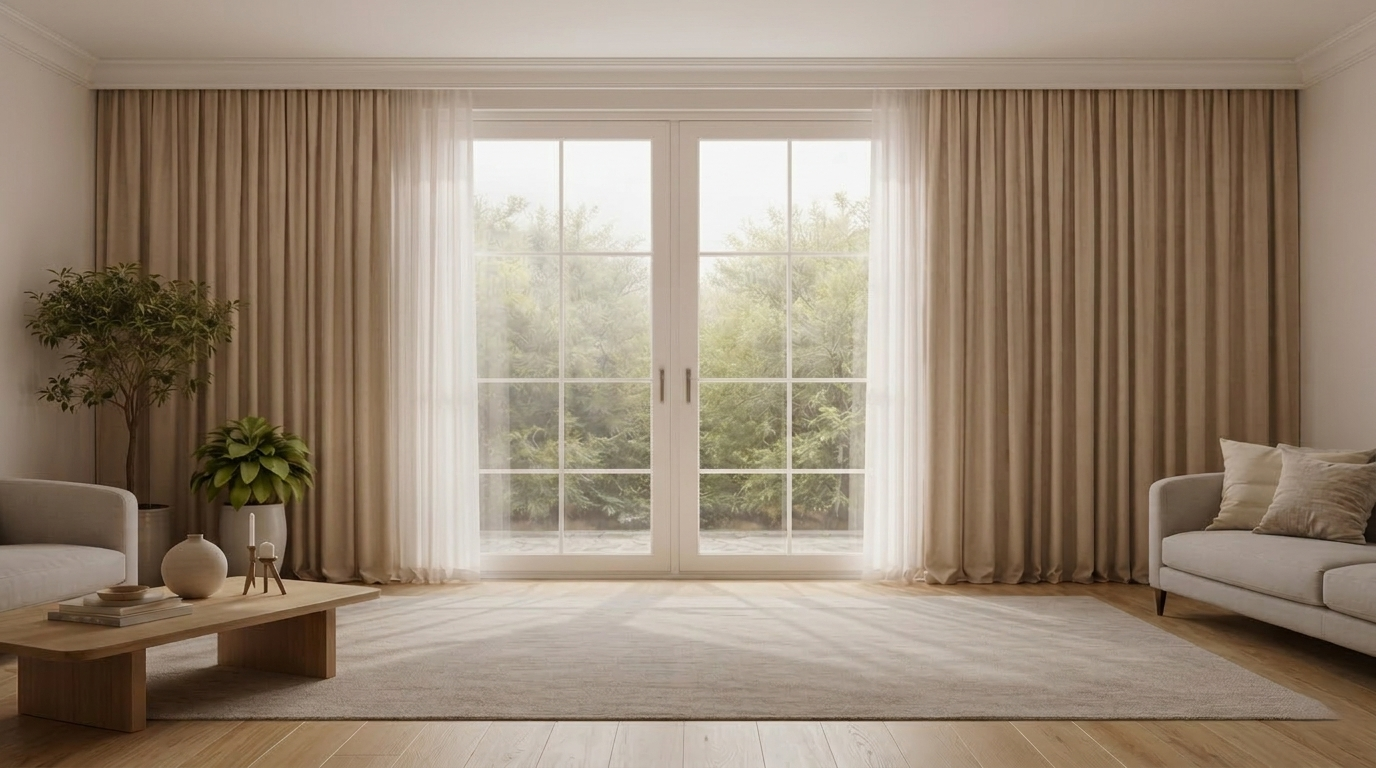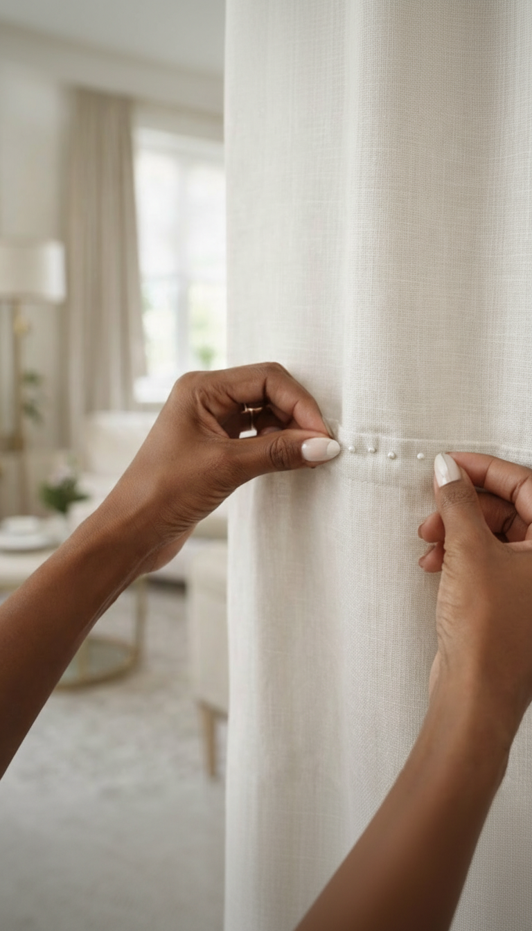 Cortinas de loja vêm em tamanhos padrão e muitas vezes ficam curtas ou largas para o vão, comprometendo o resultado final. As nossas são produzidas milimetricamente para a sua janela, com tecido, modelo, dobras e comprimento exatos — o resultado estético é completamente diferente.