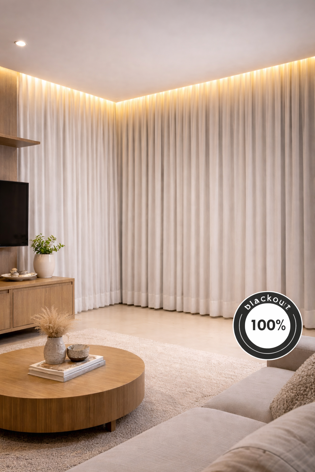 Bloqueia 100% da luz. Perfeito para quartos de bebês, home theater e dormitórios que exigem total escuridão.