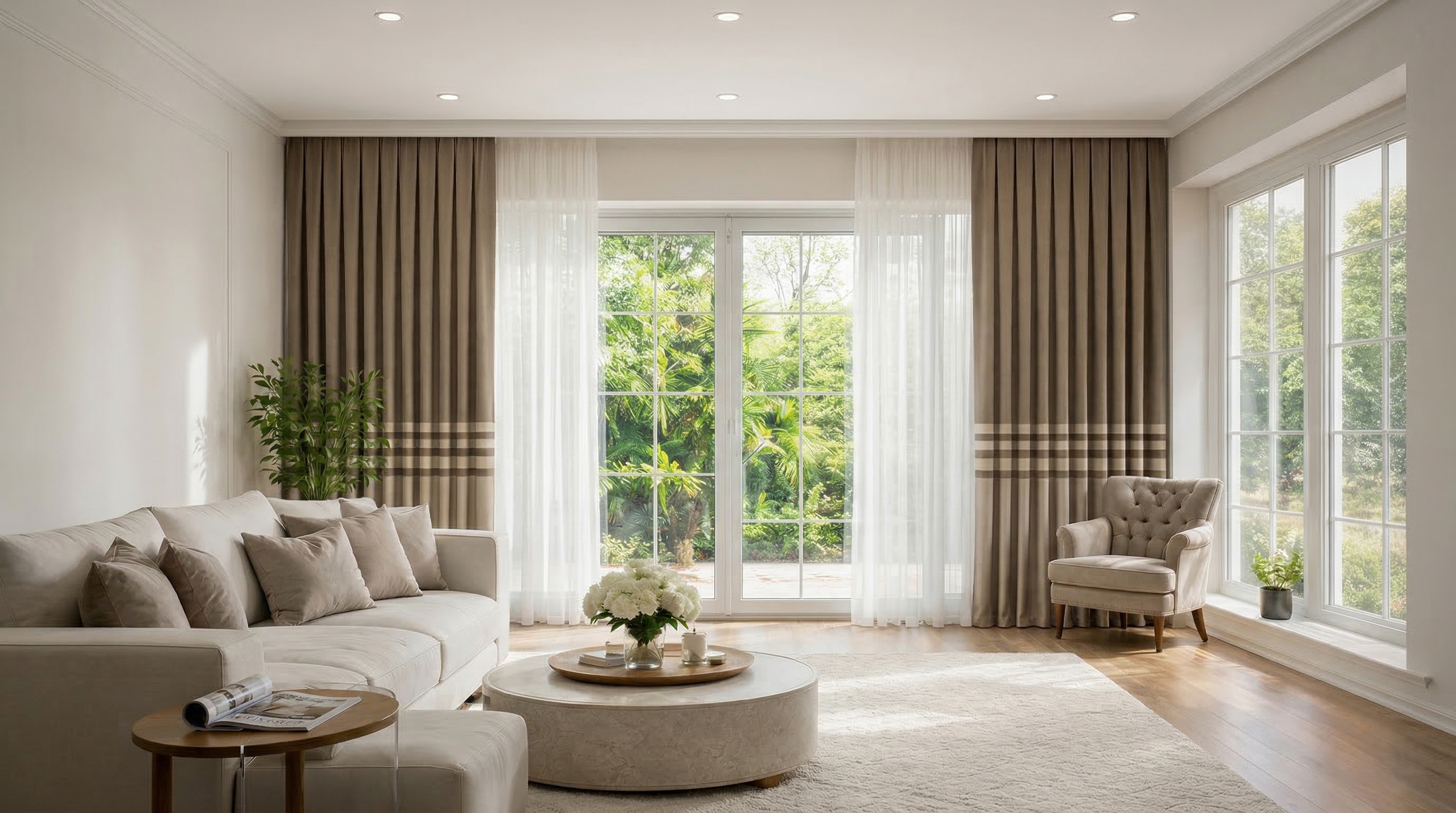 Cortinas de loja vêm em tamanhos padrão e muitas vezes ficam curtas ou largas para o vão, comprometendo o resultado final. As nossas são produzidas milimetricamente para a sua janela, com tecido, modelo, dobras e comprimento exatos — o resultado estético é completamente diferente.