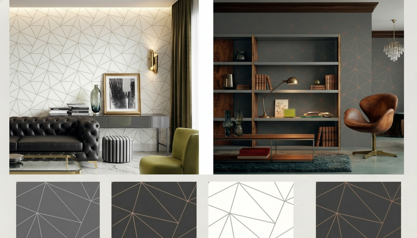 Padrões modernos e abstratos que criam dinamismo e sofisticação. A coleção Geométricos traz formas, linhas e texturas que transformam paredes em elementos de design.