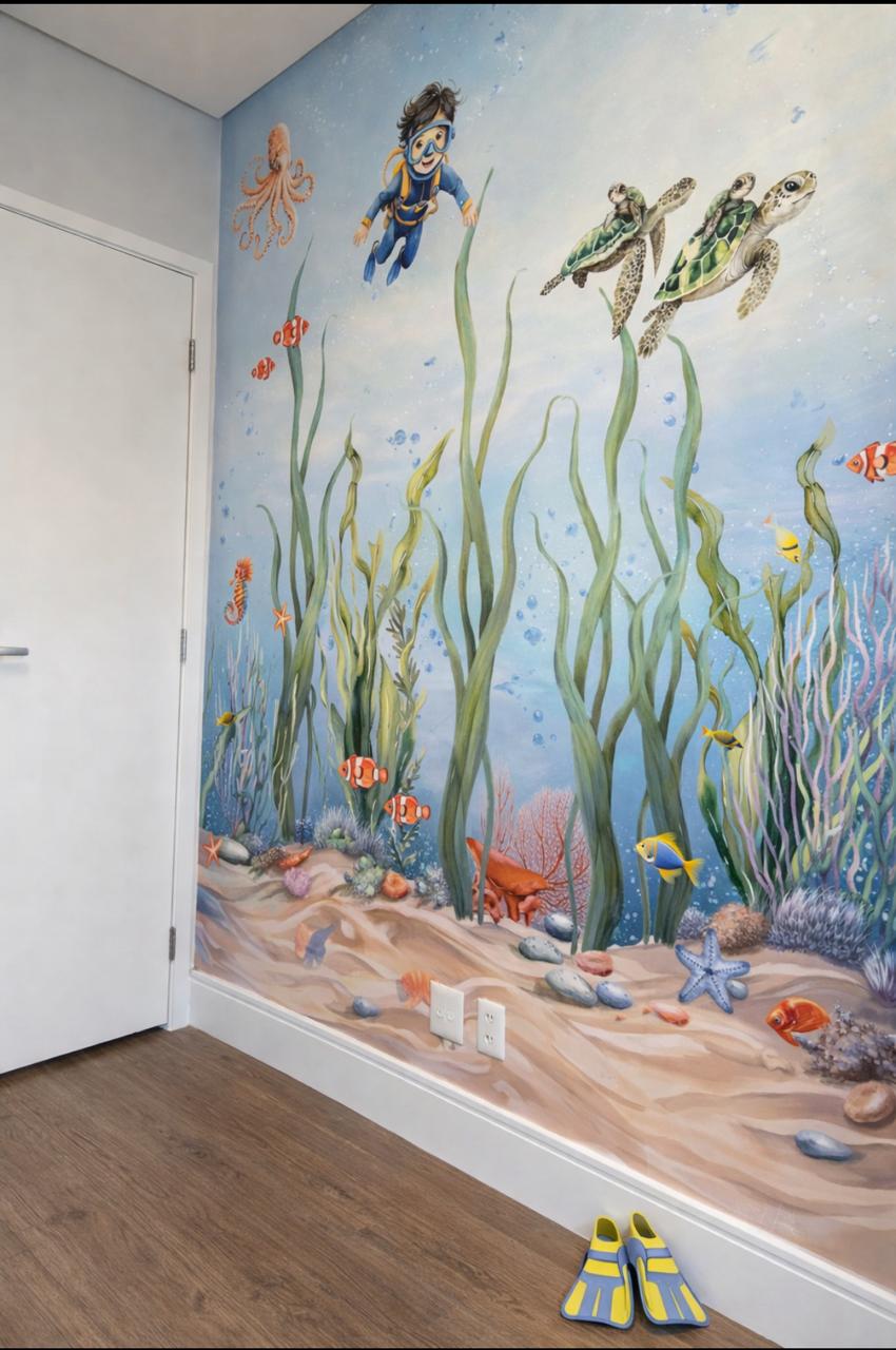 Papel de parede com revestimento de vinil (PVC), mais resistente e limpável com pano úmido, ideal para ambientes internos.