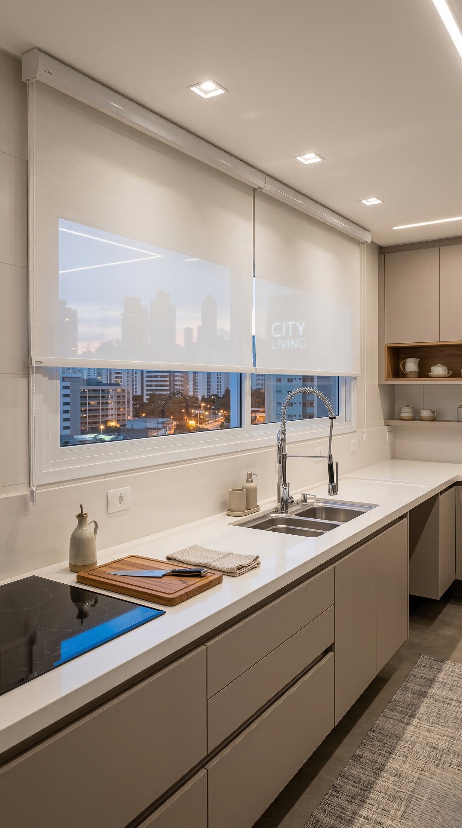 Tecnologia soft-touch que não compromete a estética da cortina.