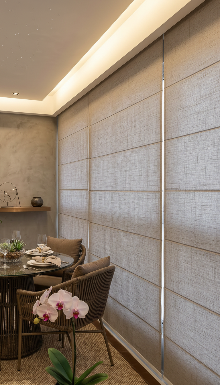 Elegância na sua forma mais simples. A Cortina Rolô oferece design limpo e funcional, disponível em diversas cores e tecidos — do tule translúcido ao blackout total.